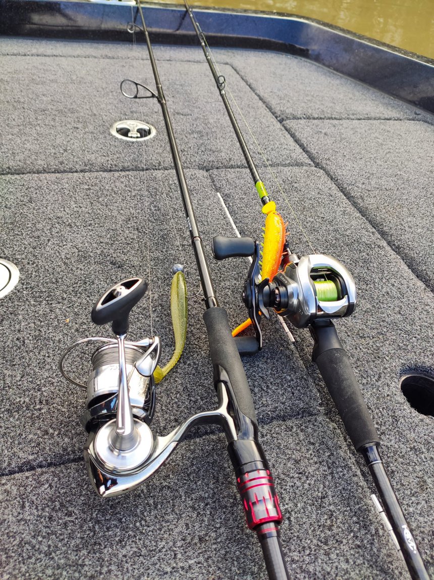 Pour que le leurre soit facilement identifié dans tout ce vacarme, il est intéressant d’utiliser des leurres à fortes caractéristiques vibratoires. J’entends par là des leurres aux formes de queues différentes, afin de varier et de tester les fréquences. Qu’elle soit ronde ou carrée, grosse ou petite, la queue des shads émet des ondes complètement différentes. Pour le grub, c’est la même chose, si la virgule est large et courte, elle n’aura pas la même signature acoustique qu’une queue fine et longue. La texture des plastiques va également influencer la nage du leurre. Plus la gomme est tendre, plus le leurre nage à faible vitesse. Il est donc intéressant de les utiliser pour les pêches lentes à moins de 0,3 km/h. Les textures plus toniques se révèlent plus productives lors des traques supérieures à 0,8 km/h ou lorsque les artificiels sont employés dans les courants.