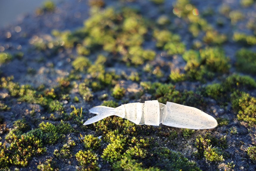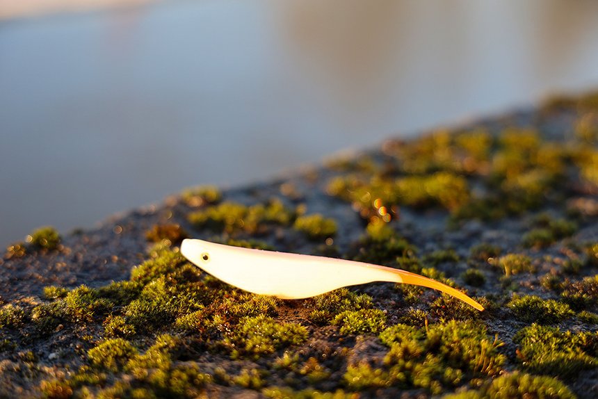 • Le finess à queue simple (slug) : il a le corps plus arrondi avec un léger plat sur le dos et se termine par une queue pointue. On peut penser au slug de Lunker City, au Hazedong de Megabass, au One Up Slug Sawamura… De texture souvent plus souple et avec une queue très mobile, il engendre de fines vibrations qui rendent dingues les carnassiers. Il est adapté aux pêches finess rapides en linéaire, en hiver dans des températures d’eau comprises entre 6 et 10°C.