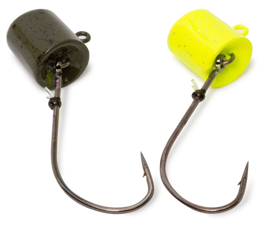 Jusqu’à présent les têtes Ned proposées sur le marché étaient plutôt légères. De 1,5 à 6 ou 7 grammes seulement. Il faut dire qu’elles étaient souvent utilisées pour pêcher des bordures ou des zones peu profondes afin de traquer le black-bass aux abords d’herbiers, d’éboulis et surtout de structures, pontons et autres plots plantés en pleine eau. Ce carnassier aime se tenir tout près de ces cachettes afin de bondir sur un banc de fourrage passant à proximité. Ces têtes assez légères se fixent aisément sur les vers et frites et, en jouant sur leur poids, descendent plus ou moins vite dans la colonne d’eau. À la belle saison un lest léger permet au poisson de monter intercepter le montage en pleine eau lors de sa chute. N’y comptez pas trop en hiver, saison durant laquelle les carnassiers sont souvent plus en profondeur.