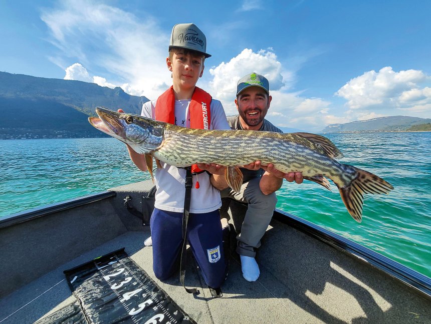 Jimmy Maistrello passe plus de 300 jours par an à guider des stagiaires de tous âges et de tous horizons dans ces milieux de lacs alpins. Autant dire qu’il connait sur le bout des doigts leurs populations ichtyologiques. Lorsque des stagiaires viennent sur son bateau, c’est avec la ferme intention systématique de prendre des poissons : des brochets principalement, la star de ces lacs et l’une des grandes spécialités de Jimmy, mais également des ferras, des sandres ou des grosses perches. Et plus récemment donc, lorsque les conditions s’y prêtent, des silures. Au sujet de ces derniers, mon hôte du jour sait garder nuance : « Que l’on les aime ou pas, cela ne changera pas le fait que les silures sont bel et bien présents dans nos lacs alpins aujourd’hui. Mon activité professionnelle sur ces vastes étendues d’eau est principalement articulée autour de la pêche des brochets et je garde cette image et cette expertise comme une identité forte de mon entreprise. Mais je suis également un pêcheur de l’arc alpin, c’est-à-dire de tous les types de poissons carnassiers qui peuplent “mes” lacs et, à ce titre, je considère le silure pour ce qu’il est aujourd’hui, un poisson carnassier du biotope au même titre que tous les autres. Je perçois ce nouveau venu comme une sorte de valeur ajoutée à un cheptel déjà riche. Je ne suis pas « spécialiste » ou « spécialisé » dans la pêche du silure, pas du tout même. Je m’attache à savoir le capturer et le faire capturer comme une sorte de poisson “bonus” pour mes stagiaires depuis ces dernières années. » Une approche particulièrement intéressante, qu’il est possible de mettre en application un peu partout en France aujourd’hui. On peut profiter du nouveau venu ponctuellement sans pour autant en être spécialiste et pêcheur exclusif. En effet, lorsque les conditions sont propices et que tous les marqueurs de l’activité des silures sont aux verts, Jimmy n’hésite pas à basculer intentionnellement d’une quête du brochet à celle des poissons à moustaches pour quelques heures. Une démarche qui va bien au-delà de la « simple erreur » de casting d’une prise accidentelle, ce qui peut toujours arriver au demeurant.