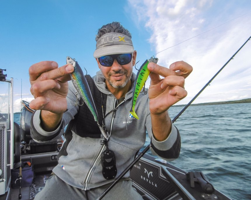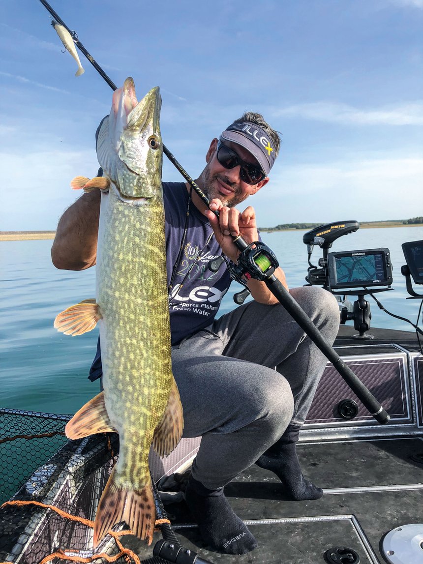 Dans ces vastes milieux, c’est début octobre que se produit une accélération intense de l’activité des prédateurs. Les brochets jusque-là solitaires n’hésitent pas à se rassembler autour des premiers bancs compacts de poissons fourrages pour s’alimenter frénétiquement. La température de l’eau encore importante facilite l’assimilation alimentaire de ces prédateurs. L’utilisation de leurres à fortes vibrations est recommandée, notamment des leurres souples avec un fort rolling, ces modèles qui montrent bien leurs flancs lors des récupérations rapides en linéaire. C’est cette animation de fuite rapide qui déclenche le plus de touches à cette période de l’année. Le brochet voyant une proie sortir rapidement du banc de fourrage n’a pas le temps de réfléchir et passe à l’attaque même dans les lacs où la pression de pêche a rendu les poissons méfiants. Ces touches franches devront être sanctionnées par des ferrages appuyés pour éviter les décrochages. Les tailles de leurres les plus efficaces seront souvent comprises entre 15 et 20 cm parfois jusqu’à 25 cm pour séduire un plus gros poisson. Les coloris à privilégier sont les plus agressifs notamment le fameux Fire Tiger. dans certains cas le coloris perche peut faire la différence lorsque les brochets profitent de la frénésie d’un banc de zébrées pour venir en cueillir une dans le groupe !