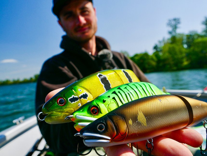 Quand Lyonel m’a posé cette question, je me suis immédiatement dit : « Eh bien, en fait, je pêche tout le temps avec un big bait ! » Mais en y réfléchissant un peu, je me suis aperçu que ce n’était pas aussi simple et pas vrai du tout. En fait, je cherche plus les gros poissons que le nombre de touches et je suis formaté à l’abnégation que nécessitent les longues séances de recherche d’un spécimen. Mais j’aime quand même bien les résultats et ma conclusion serait la suivante : dans tous les grands milieux, ou en tout cas ceux avec un vrai potentiel de gros poissons, j’utilise des leurres qui les sélectionnent, en jouant souvent sur l’agressivité. Ainsi, Mustache Rig, Miuras, gros swimbaits et leurres souples composent souvent le menu. Mais la saisonnalité, le poste et l’activité peuvent changer la donne. De fait, en début et en fin de saison, quand les eaux sont froides, je pêche énormément au jerkbait. Dans les petits milieux davantage propices à un grand nombre de touches, je joue la légèreté et j’aime descendre en taille pour les leurres comme pour les cannes. Jerkbaits minnow ou chatter sont alors super ludiques et efficaces. Enfin, quand la pêche est dure et que les poissons ne réagissent pas aux big baits, je descends en tailles de leurres (downsizing) pour capturer des poissons. Il arrive enfin parfois que les brochets soient focalisés sur une petite taille de proie, perchette par exemple, et il n’y a alors pas d’autre solution que de choisir un leurre imitatif en taille et coloris.