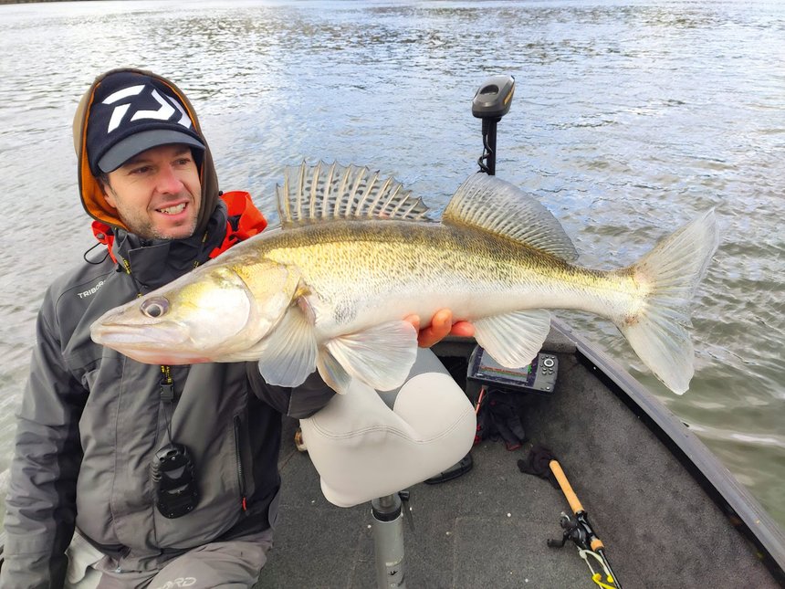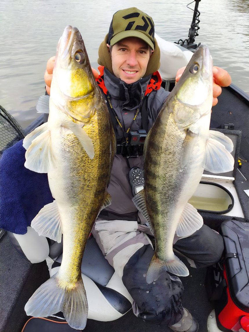 Les milieux sont tellement différents d’un fleuve à un autre, entre un lac de barrage situé en France ou un autre en Espagne. C’est là où en cherchant un peu, en discutant avec les pêcheurs du coin, les détaillants de pêche des alentours, qu’on peut trouver des idées et des solutions. Certains poissons vont manger des écrevisses, d’autres des ablettes, des goujons ou des gobies comme j’ai pu le constater sur la Seine, où la population a littéralement explosé depuis quelques années. La période de l’année et les changements de températures vont impacter directement le milieu et la nourriture que vont trouver les sandres. Quelques mois après la fraie du printemps, la plupart des espèces de poisson de nos eaux auront donné vie à des bancs de petits alevins, qui serviront pour certains de garde-manger pour les perches, de même que les petites perches serviront de garde-manger pour les brochets ou les sandres. Tous ces carnassiers ne se font pas de cadeaux. En eau froide, les poissons fourrage vont se regrouper près des fosses plus profondes pour trouver la thermocline idéale ou chercher des endroits abrités du courant. Le choix du leurre va donc être déterminant à cette période froide de l’année. Je vais vous orienter sur mes trois modèles préférés – en espérant faire augmenter vos chances de succès ! La couleur, la forme, la vibration vont être choisies avec soin pour être sûr d’avoir un leurre bien engamé lors de la touche. Lorsqu’on connaît un peu le comportement de ce poisson, on adapte la technique en fonction des conditions météo et de la couleur de l’eau. Il faut mettre toutes les chances de son côté et essayer de ne pas passer à côté de la pêche. On sait que les carnassiers entrent en activité à l’entrée de l’hiver et, plus particulièrement, lorsque les pluies chargent un peu la rivière. Mais certains jours, il faut « s’arracher les cheveux » pour trouver ce qui peut fonctionner.