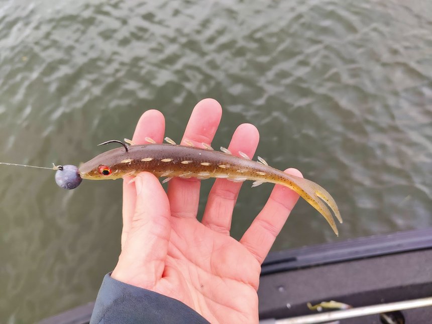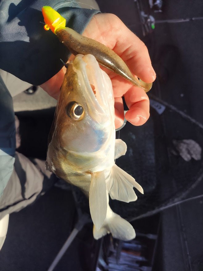 Le leurre finesse est un choix judicieux lorsque les sandres sont plus léthargiques. Ces leurres sans caudales imitent les proies de manière subtile, ce qui peut déclencher des attaques même par temps froid. De manière générale, j’utilise les finesses avec très peu d’animation, en avançant à faible vitesse à l’aplomb du bateau. Quand rien d’autre ne semble fonctionner, c’est pour moi celui qui, dans la plupart des cas, va me sauver de la bredouille. Les couleurs naturelles comme le vert ayu, le marron et l’orange pour les eaux un peu plus chargées sont des choix efficaces. Assurez-vous d’utiliser un modèle avec une queue très souple et mobile pour ajouter un peu de mouvement. N’hésitez pas à monter en taille pour décider un beau poisson. Un leurre de 20 cm ne fait pas peur aux sandres. Les beaux sujets ne vont pas se déplacer pour rien.