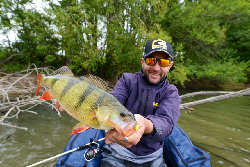 Christophe enchaîne plusieurs zébrées affichant de jolies formes et une robe parfaite. Ah ! Qu’elles sont racées ces gersoises ! Le coup de feu est cependant de courte durée. Il insiste, dans l’espoir de prendre une toute grosse, multipliant les changements de leurre, de taille, de forme, de couleur. « Pourtant, il y a encore trois jours… » marmonne-t-il. C’est au tour d’un joli black-bass de s’inviter cette fois sur son Nitro Shad de 6 cm. Ces deux heures de pêche se solderont par une dizaine de belles perches, certaines grosses comme un ballon de rugby, quoi de plus normal en ce pays d’ovalie !
