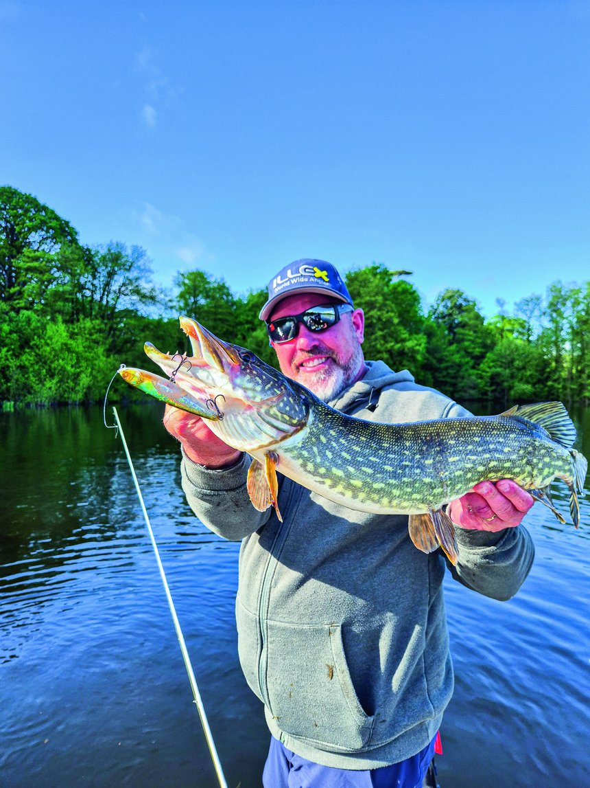En surface, le brochet peut avoir plusieurs comportements. En effet, il arrive qu’il saute par-dessus le leurre, qu’il attaque avec beaucoup de violence sans le prendre. Dans ce cas de figure, il cherche juste à faire sortir l’intrus du territoire. Vous constaterez en changeant de leurre que les attaques deviennent moins spectaculaires, mais qu’elles se traduisent par une aspiration plus qualitative. Si vous observez ce comportement, je vous invite à descendre un peu en taille de leurre et à passer sur une couleur un peu plus mimétique dans le milieu. Savoir agresser ou, au contraire, se fondre dans le décor est souvent la clé du succès. Amusez-vous, l’été vous attend !
