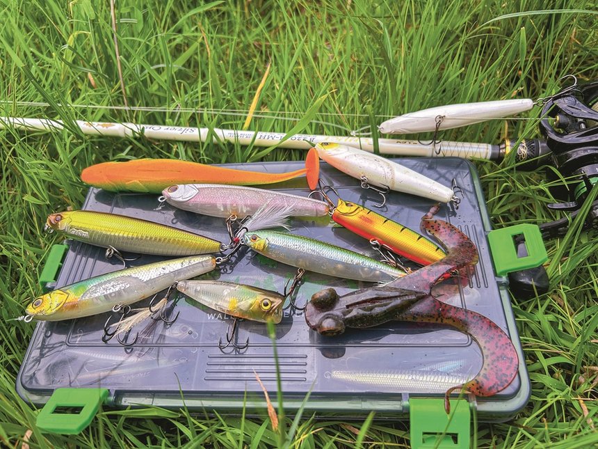Tout d’abord, il convient de définir deux types de postes. Il y a ce que l’on va appeler l’eau « libre » : à savoir, les bordures de roseaux, au-dessus des herbiers immergés, entre les coques de bateau dans un port, les piles de pont ou pointes rocheuses, les canaux entre les nénuphars et autres arbres noyés. Dans cette configuration, tous les leurres peuvent passer, car il n’y a rien pour retenir les hameçons. A contrario, si l’on souhaite lancer au cœur des roseaux, nénuphars, sur des plaques de renoncules ou dans un entrelacs de branchages, il convient d’adapter le choix du leurre pour optimiser la prospection. La pêche autour des structures est de loin la plus pratiquée. Elle est plus rapide, on couvre du terrain et les combats sont bien plus simples. Autre gros avantage, l’ensemble des leurres peut convenir. Personnellement, j’ai une forte préférence pour les stickbaits dans ce cas de figure. Ils se lancent loin et avec précision, peuvent pêcher à toutes les vitesses. C’est la catégorie de leurres de surface dans mes boîtes qui offre la plus grande diversité, tant au niveau des tailles que des sonorités. Avoir le choix, c’est bien, mais encore faut-il le faire de manière avisée car tous ne se valent pas..