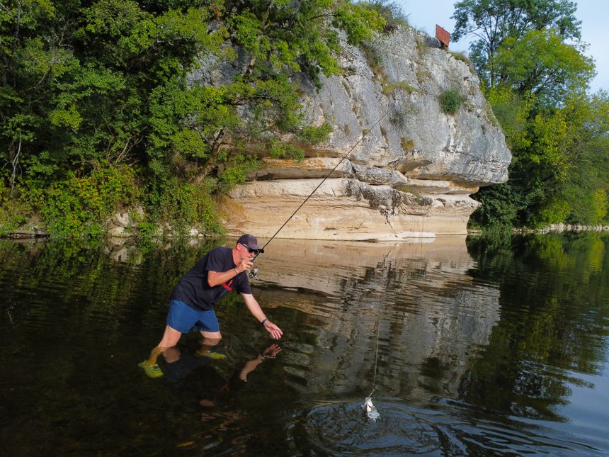 Sur les phases de chasse ou d’activité, il est possible de pêcher vite et donc de ramener vite son leurre. Ramener son stickbait ou son popper et accélérer lorsque les perches se mettent derrière pour l’attaquer déclenchera souvent des touches. À l’inverse, si elles n’attaquent pas, c’est que vous ramenez trop vite. Dans ce cas, ralentissez l’animation et, surtout, faites des pauses. Vous verrez alors votre leurre de surface se faire attaquer soit sur la pause soit au moment où il redémarre. On pêche souvent trop vite de manière générale, alors n’hésitez pas à ralentir si rien ne se passe ! Énervez-les avec des animations rapides, déclenchez les bancs de perche avec de gros leurres si elles sont peu actives ou si elles ne réagissent pas à des leurres de tailles « standards ». Il suffit souvent d’en déclencher une pour rendre tout le banc actif.