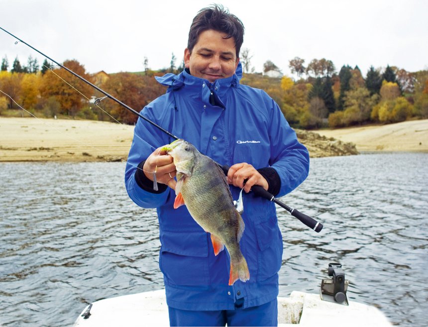 En l’espace de deux heures, nous touchons une centaine de poissons, en majorité des sandres. De la folie pure. Dès que le leurre est au fond, c’est la touche. Si ça décroche, une autre touche survient aussitôt. Nous réalisons doublé sur doublé. Voilà pour moi ce qu’est l’exemple parfait d’un jackspot, combiné à des conditions de pêche favorables. Nous croisons des collègues qui ont fait une bonne pêche, une grosse dizaine de poissons, donc en effet ça mordait. Mais le spot que nous avons trouvé était vraiment spécial. Mais ce jour-là seulement: testé le lendemain, il n’y avait plus un poisson !