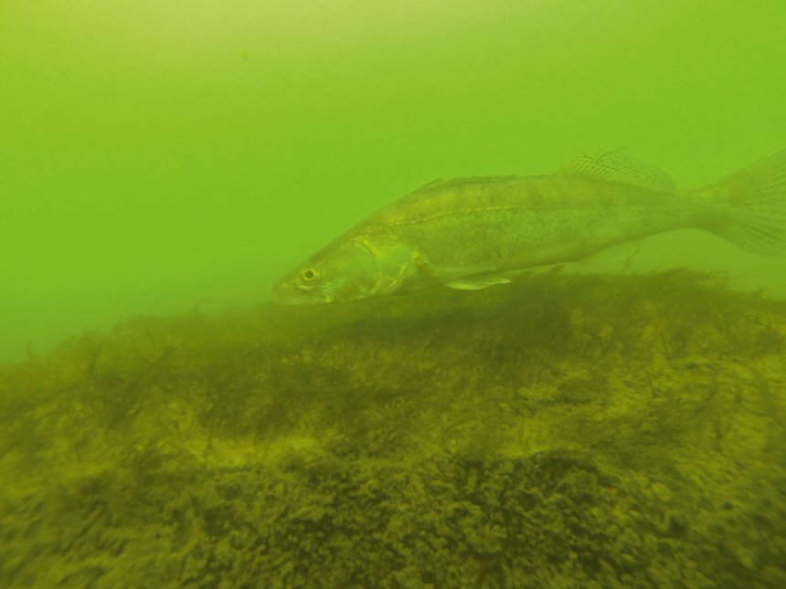 Un joli sandre pris sous plusieurs mètres d’eau.