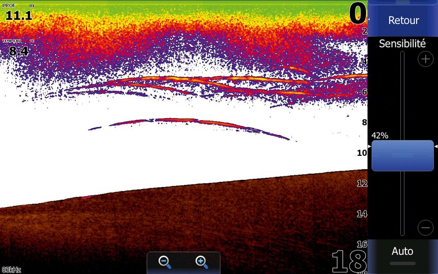 À cette période de l’année sur les grands cours d’eau, les sandres focalisent leur alimentation sur les ablettes. Ces petits poissons blancs se positionnent essentiellement dans les courants lorsque les eaux montent en température. Les carnassiers n’hésitent donc pas à monter entre deux eaux pour les chasser. Le linéaire est donc une technique adaptée pour parcourir ces différentes hauteurs d’eau. En bateau, aidé par votre échosondeur et votre moteur électrique, il est intéressant de positionner votre embarcation juste au-dessus de la cassure. De cette manière, en lançant le leurre parallèlement à la berge et à la même distance du bord que votre bateau, le leurre évolue dans la profondeur détectée. Les sandres adorent venir se positionner le nez face à la berge en limite de cassure. Ainsi placés, ils attendent le passage d’une proie. Vous comprenez alors l’intérêt de faire évoluer votre leurre à une profondeur précise. Lorsque les carnassiers ne se trouvent pas sur le haut de la fosse, il faut changer d’angle d’attaque et prospecter les grands fonds.