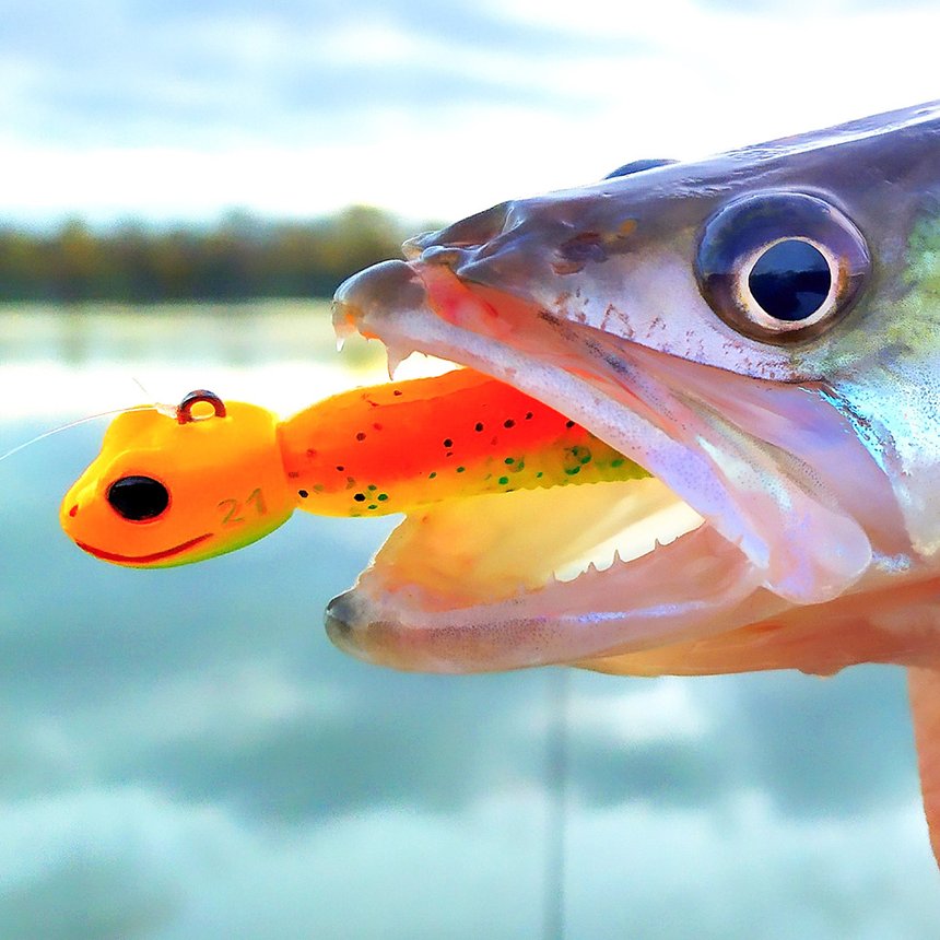 Malheureusement, il est fréquent de se faire couper au moment de la touche. Mais sandre ou brochet, il faut choisir ! Une petite astuce consiste à placer sur la ligne une bille de liège, ou un pop-up (bouillette flottante). Enfilée à l’aide d’une aiguille à bouillette sur le bas de ligne, cette bille flottante est placée contre le leurre. Elle a pour effet de le décoller du fond. En fonction des couleurs, certaines bouillettes flottantes apportent une touche de couleur qui reste très appréciée des carnassiers lorsque les eaux sont teintées. En eaux claires, les montages plus discrets donnent de meilleurs résultats. Il n’est donc pas nécessaire de placer une bille flottante sur le devant du leurre. Sur ce « traînard », le choix d’un LS de type grub rapporte souvent de bons résultats. Grâce à sa virgule en mouvement permanent, ce leurre peut être récupéré plus lentement qu’un shad. C’est ce qui en fait toute son efficacité ! Une variante consiste à remplacer le plomb poire par un LS avec une tête plombée. C’est souvent un shad qui est utilisé dans ce genre de présentation. L’avantage étant de proposer au sandre deux vibrations différentes afin de connaître rapidement le leurre du jour. Le LS ayant plus de portance dans l’eau que le plomb seul, il est nécessaire de légèrement surplomber, afin de mieux percevoir les deux leurres. En cas de doute, ferrez ! Lorsqu’une touche survient sur le leurre du dessus, la perception peut être soit un petit « toc », soit une sensation de légèreté soudaine dans la canne. Celle-ci est due au fait que le carnassier a attaqué dans le sens de progression du bateau. Le sandre poussant la ligne au lieu de tirer dessus, c’est un mou qui est ressenti. Il faut alors ferrer de manière ample sans ménagement, afin de récupérer la bannière qui s’est formée lors de l’attaque. Mais, souvent, le leurre est aspiré profondément et le sandre, le brochet ou la perche sont bien piqués.
