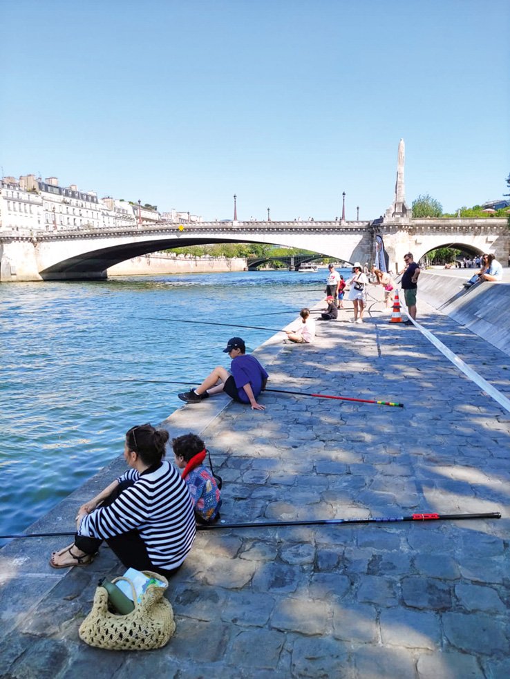 Même à l’époque où le poisson avait disparu, la pêche à Paris est toujours restée populaire. En témoignent les Jeux olympiques de 1900, durant lesquels la pêche faisait partie des épreuves. Celle-ci ne fut mise au programme qu’au terme de vifs débats politiques. En effet, aux yeux de certains députés, la pêche ne méritait pas le statut de sport. Mais d’autres y voyaient au contraire un moyen d’intégrer les classes populaires dans des JO historiquement réservés à l’élite et même – point de vue visionnaire – de sensibiliser le grand public à la préservation de la vie aquatique. La compétition, qui s’est tenue sur l’île aux Cygnes, en aval de la tour Eiffel, fut un immense succès. 600 concurrents venus du monde entier ont émerveillé 20 000 spectateurs. Mais, pollution oblige, ils ne pêchèrent que des ablettes. Aucune de leurs 2 051 prises ne dépassa la taille d’une main. Quand on compare ce résultat à celui de concours plus récents, comme le championnat du monde de pêche au coup qui s’est tenu à Paris en 2001, ou les opens annuels de street fishing organisés par l’Union des Pêcheurs de Paris, on comprend à quel point la situation s’est améliorée… Les trois AAPPMA de la ville, très actives et, fait remarquable, toutes trois présidées par des femmes, ont de quoi être fières de leurs résultats, qui attirent chaque année près de 8 500 cartes de pêche annuelles, et 30 000 pêcheurs occasionnels.