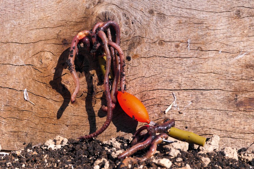 C’est seulement après ces fondamentaux que Laurent se penche sur le type de teaser qui fera, ou pas, la différence. Sur les secteurs régulièrement pêchés, nos retours d’expériences nous amènent tous les deux à privilégier les teasers dits « silent ». Un large disque de caoutchouc ou de plomb formant un plan orthogonal par rapport à la ligne de pêche vient créer une colonne de dépression d’eau à chaque animation sèche vers le haut. Cela provoque un mouvement erratique des vers de terre très excitante. Cette option est idéale en avril partout en France du point de vue de la réglementation car il n’est pas composé d’un octopus au contraire de bon nombre d’autres appelants et ne peut pas être assimilé à un leurre à brochet.