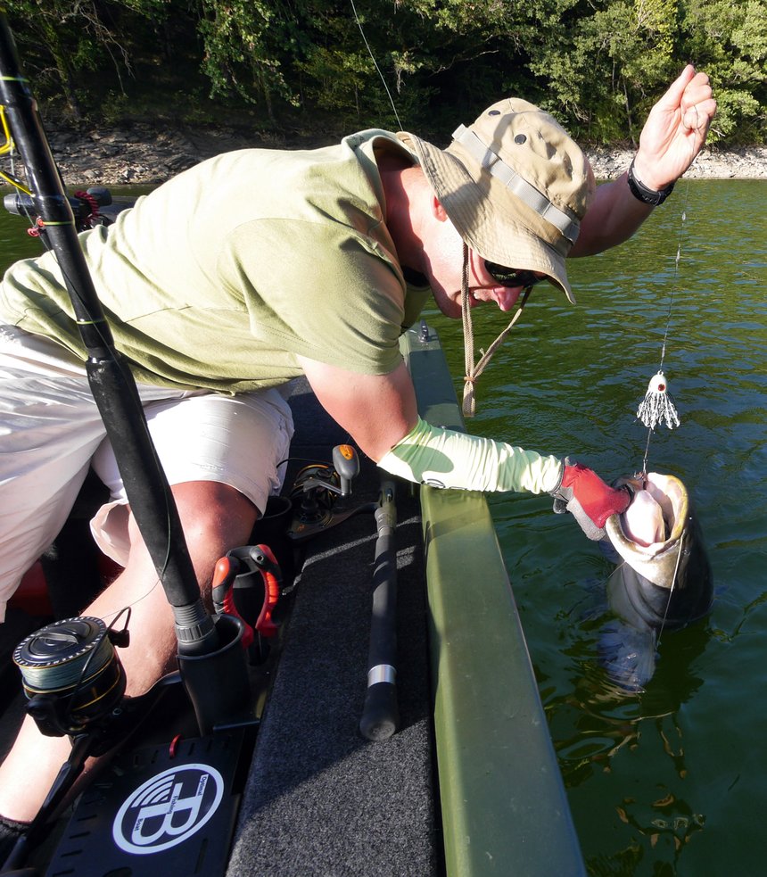 Jérémy décolle légèrement l’un de ses montages. D’ailleurs, il n’aime guère le terme décoller : « Finalement, je cherche plus à équilibrer mon montage qu’à le décoller franchement. Si la bouchée se présente à quelques millimètres du sol, c’est parfait. Les micro-flotteurs de 3 g à 10 g grand maximum sont parfaits pour cela. » Une fois les trois montages à l’eau, place à la patience et à l’observation. Le premier but à atteindre pour ce multiple champion national et international de pêche du silure, c’est de « trouver rapidement la tendance » afin que chacune des cannes soit exploitée pleinement. « Dans de telles conditions, le bon secteur déniché et la bonne présentation trouvée, tu peux régulièrement enquiller dix touches dans la journée ! Autant d’action avec une approche vraiment simple qui favorise l’observation et la lecture du biotope, c’est génial, c’est un passage de l’année que je ne laisserais passer pour rien au monde ! » conclut-il.