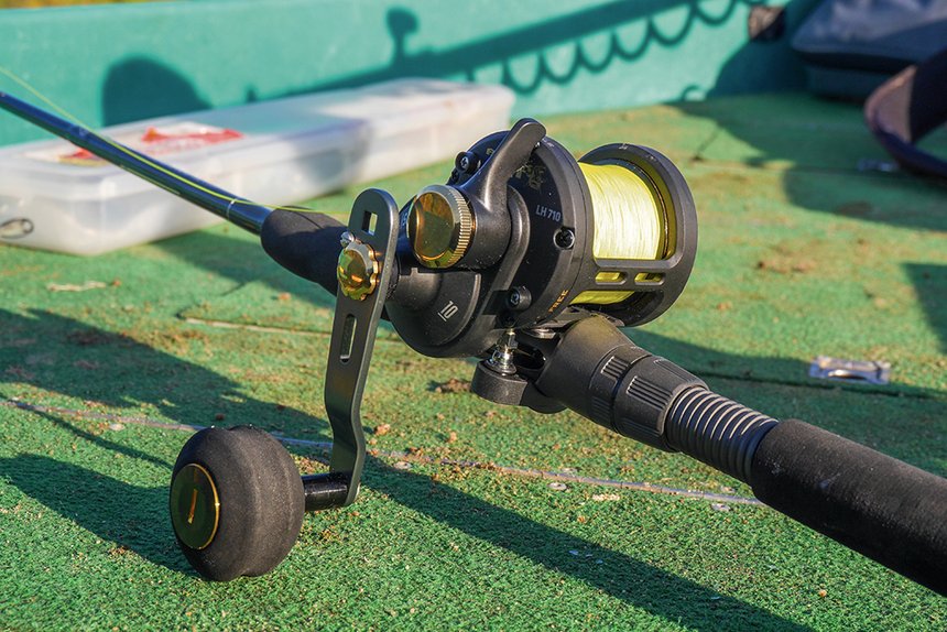 Un tel bilan est peut-être encore plus criant lorsqu’il s’agit des moulinets ! Ils ont tout d’abord été alourdis pour augmenter leur robustesse et leur puissance de frein. Des modèles casting haut et bas profils ont été spécifiquement développés. Ils offrent un équipement compact et extrêmement résistant, permettant de répondre parfaitement à l’essence même de la « vertiglane ». Ils sont légers, maniables, confortables à l’usage prolongé et offrent une ergonomie sans commune mesure pour libérer de la tresse lorsque le fond descend.