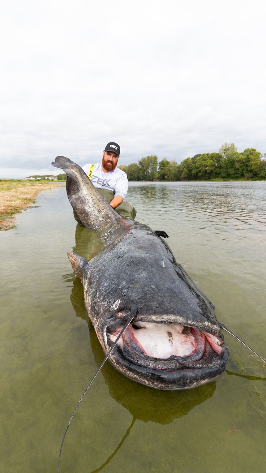Mais alors que Jérémy part seul pour relier la troisième ligne, une première touche brutale fait céder le premier cassant, je saute sur la canne et j’assure plusieurs ferrages autoritaires et tandis que mon complice revient sur la berge, je me fais malmener par un poisson difficile à contrer qui dévale le courant principal. Après quelques minutes de combat, je suis déjà dans le rouge et forcé de faire tourner la canne à mon partenaire du jour qui réalise à son tour qu’il y a un sacré client au bout du fil. Quand le poisson s’échoue enfin sur la plage, nous comprenons que nous sommes face à un vrai géant de Loire et la mesure confirme nos impressions, ce poisson de 2 m 63 est un nouveau record personnel pour lui comme pour moi.