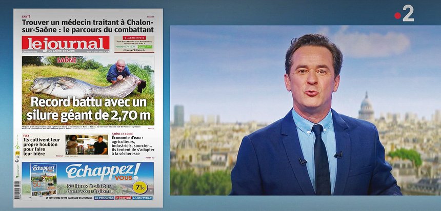 Les captures de cette taille sont rares et le très gros silure mesuré à 2,70m, capturé par Jean-Jacques Desseaux le 22 juin dernier sur la Saône, au sud de Mâcon, a provoqué un sacré buzz. Ses photos ont évidemment fait la Une de la presse quotidienne locale. Les 13h de TF1 et France2 en ont même parlé dans leurs revues de presse.