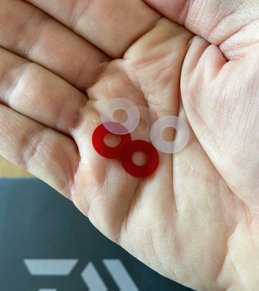 Pour en revenir à l’ajout ou au retrait des rondelles en plastiques placées sur l’axe en inox du moulinet, juste en dessous de la bobine, il faut savoir que si votre ligne semble s’enrouler davantage sur le bas de votre bobine, en supprimant une rondelle, vous devriez parvenir à rétablir le bon équilibre. Et a contrario, si la ligne s’accumule plutôt sur le haut de la bobine, il faudra ajouter une rondelle plastique pour corriger le décalage. Tout ceci est expliqué dans le manuel d’utilisation fourni dans la boîte d’origine de votre équipement, n’hésitez pas à y jeter un coup d’œil !