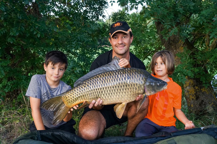 En moins de 24 heures la session était faite et nous avions encore une nuit et une matinée de pêche. Nous replaçons à l’identique les trois cannes productives et déplaçons la quatrième qui est restée muette… Paul est trop fier de « sa » carpe qu’il a prise tout seul. La dernière nuit tombe et c’est à minuit pile qu’un départ de l’espace a lieu, de nouveau sur la canne de Paul ! Mon bonhomme est tellement cuit qu’il ne se lève pas. Au bout de 10 minutes de combat, je commence à me demander ce que nous avons attelé. Après quelques galères c’est un des mammouths du lac qui est vaincu. Je suis moi aussi sur un nuage ! Je mets la belle en sécurité et replace tout! Ce sera la dernière touche, mais quelle touche! Le lendemain les yeux émerveillés de mon fils aîné sont la plus belle des récompenses, loin du peson, de la pression et des soucis du quotidien ! Une session extraordinaire à mes yeux, peut-être la plus belle de ma vie de pêcheur: le partage de moments simples et vrais avec mon grand garçon !