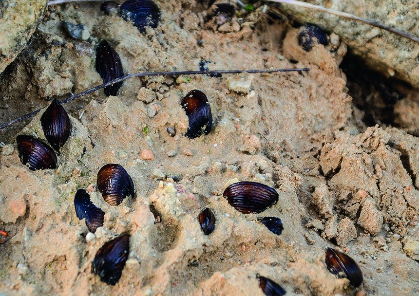 Cela va sans dire, les carpes margent des moules, elles semblent même adorer ça. C’est assurément une bonne source de nourriture, riche, bien protéinée et facile à « chasser » (ce bivalve ne nageant pas bien vite). Pour les carpes, je pense cependant que la moule est moins pratique à consommer que la corbicule. L’une étant solidement attachée à une structure immergée (grâce à son « byssus ») et l’autre simplement posée sur le fond. J’ai parfois halluciné en observant des carpes en milieu naturel ou en vidéos subaquatiques. Elles s’alimentent quelquefois en aspirant des invertébrés et autres bivalves sur des structures verticales. Elles montent ainsi sans problème dans la couche d’eau pour « curer/aspirer » le revêtement des branches et autres piquets. C’est fou quand on y pense, nos chères carpes sont capables de s’alimenter sur le fond, entre deux eaux (en pélagique), sur les structures verticales comme à la surface… Impossible de finir ce papier sans parler de la pêche sur des spots colonisés par les dreissenes. Leurs coquilles sont extrêmement abrasives et réputées pour couper très facilement les lignes. J’ai de frustrants souvenirs de casses sur mes 1res pêches sur le Tarn, en amont de Montauban… C’est sûrement à ce moment-là que j’ai commencé l’inventaire des matériaux potentiellement utilisables en tête de ligne et en tresse à bas de ligne. Et c’est sûrement à cette même époque que la bonne vielle tresse Quicksylver de Kryston a commencé à devenir mon alliée ! Il est vraiment nécessaire d’utiliser de solides matériaux sur les eaux colonisées par ces coquillages et de tout mettre en place pour que la ligne ne soit jamais en contact avec une grappe de dreissenes…