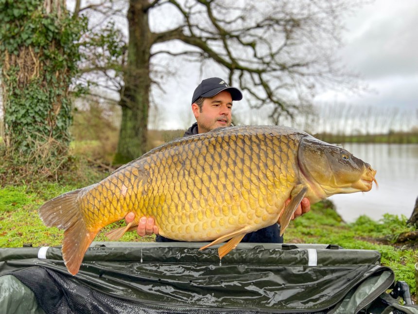 Ce ne sera malheureusement pas efficace puisque jusqu’au lendemain 14h, je n’enregistrerais aucune autre touche. En fait, il semblerait que les poissons aient un rythme de passage mais je reste persuadé que le fort vent Sud-Ouest plutôt doux pour la saison n’y est pas pour rien. Les vagues battent la bordure opposée à la mienne et en plus elle n’est pas pêchée à cause de la chasse. Les poissons y sont donc tranquilles et y trouvent aussi certainement de la nourriture naturelle en suspension. Finalement, les touches auront lieu chaque jour aux environs de la même heure, c’est-à-dire l’après-midi et le soir. Ma petite session se soldera avec 12 poissons sortis pour 13 départs. Je n’en demandais pas tant surtout que le plus petit poisson avoisinait les 12 kg durant ces trois jours pluvieux mais heureux. En tant qu’amateur de compétition de pêche de la carpe, je n’ai pas pu m’empêcher de remarquer l’intérêt certain de ce plan d’eau pour s’entraîner techniquement. On peut réaliser de très jolies pêches au zig ou au glaçon mais aussi à la bouillette pure, lancée au Cobra. Les poissons rentrent plutôt bien sur les amorçages et l’on ne peut pas dire que Soubise soit un plan d’eau difficile.
