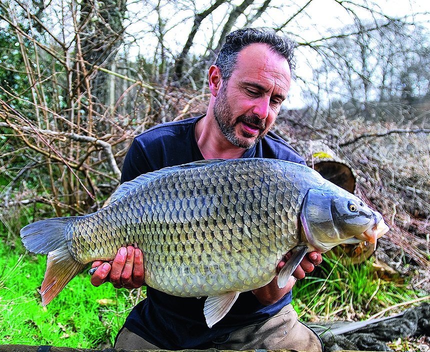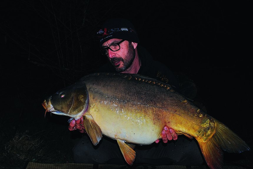 Rien, nada, pas un bip, plus aucune activité sur ma zone. Les poissons se montrent toujours régulièrement vers la digue et ne semblent pas vouloir en bouger. Le soleil monte vite et la journée est anormalement chaude pour la saison. Quelques poissons croisent en surface. Aucun de mes appâts n’a été touché et j’ai reposé à l’identique, espérant que l’eau se réchauffe et mette les poissons en appétit. Dans l’après-midi, je dépose des chods sur le moindre signe d’activité mais rien n’y fait. Un grand nombre de poissons se fait bronzer au poste 5 à l’arrivée d’eau. Une bande de petites carpes qui ne me donnent pas envie de changer de poste. Le soir arrive, puis la nuit, toujours rien mis à part ces manifestations vers la large zone de la digue. Le lac est partagé en deux et les poissons ne se montrent jamais au-delà des postes 3 et 7… Il fait aussi froid que la nuit passée mais cette fois j’ai pris mes précautions. Le matin, je me dis que la partie est bien mal engagée, et Pierre qui prend de mes nouvelles commence à stresser. Il va falloir faire quelque chose ! Une fois mon petit-déjeuner avalé, je vais explorer la zone où j’ai vu et entendu bouger les carpes depuis mon arrivée. Il est un peu tôt et je n’observe rien qui me pousse à venir par ici. Je laisse passer la matinée et rebelote, l’activité reprend, toujours au même endroit. Cette fois, c’est décidé, je bouge ! Si les carpes ne veulent pas venir à moi, c’est moi qui irai à leur rencontre.