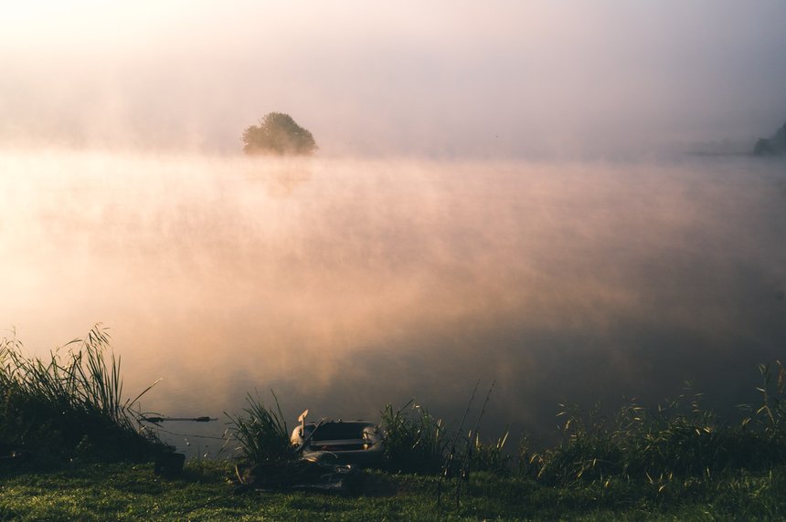 Les premières heures du matin avec le brouillard sont évidemment humides et froides : il ne faut aucunement oublier un bon duvet et l’équipement du baroudeur hivernal. Mais quand enfin le soleil se lève, cela réchauffe les esprits et fait monter de quelques degrés le thermomètre. Je prépare donc mes montages avec cette petite chaleur agréable. J’opte pour des bouillettes de 20mm aux poissons et aux épices et des flottantes en 14 mm : ce sont les armes que j’ai utilisé sur ce lac.