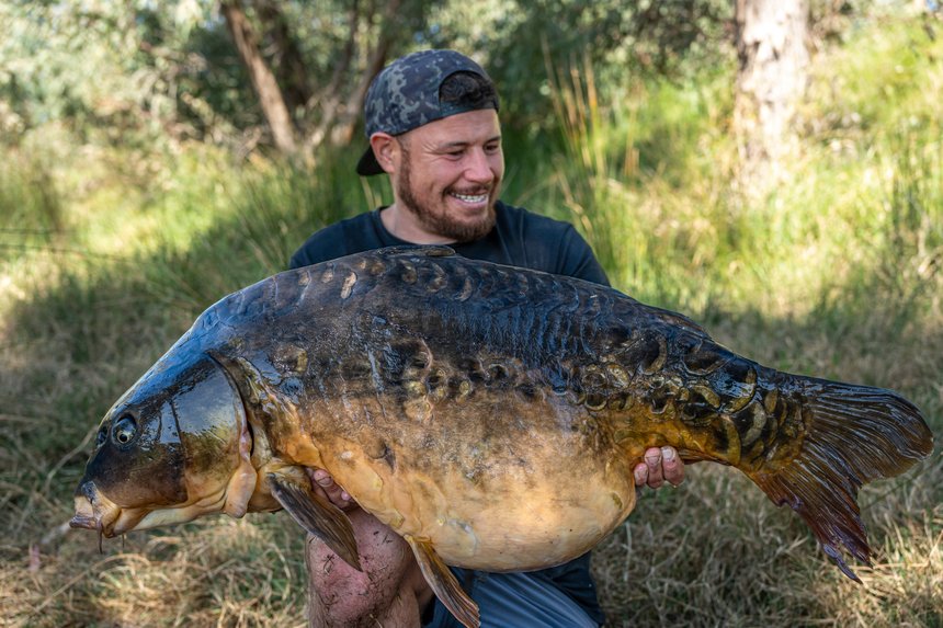 Oui, beaucoup, probablement trop pour les citer ici. Je pense qu’en France, ma capture la plus mémorable a été mon premier poisson de 30 kg au Lac du Der. Ce lac est une exception dans le monde, un lac qui me tient vraiment à cœur et c’est vraiment difficile ! Pour moi, je pense que la difficulté réside dans l’attraction qu’exerce ce lac emblématique et dans le nombre ridicule de carpes massives qui peuplent ses eaux. Il m’a fallu cinq ans pour attraper une carpe de 30 kg du Der. Et bien que nous ayons attrapé beaucoup de gros poissons de plus de 25 kg, atteindre la barre magique des 30+ a été une lutte. Après tout, les meilleurs pêcheurs de toute l’Europe viennent sur ses rives pour tenter d’attraper leur rêve. Pour moi, le lac du Der est le lac le plus spécial du monde. L’année dernière, Claire et moi avons eu la chance d’attraper des poissons vraiment spéciaux dans ma nouvelle maison et mon pays, l’Espagne. Claire a eu la chance d’attraper une miroir de 28 kg dans notre rivière locale et j’ai également eu la chance d’attraper un certain nombre de poissons de 25 à 27 kg dans la même rivière cette année. Une capture exceptionnelle pour moi a été une miroir de 28,2 kg provenant d’une petite gravière à côté de la rivière alors que j’étais parti en session à moto. Une grande surprise pour moi, venant d’un petit lac d’environ 2 ha, sauvage et intact, ce poisson était exceptionnel, non seulement pour sa taille, mais aussi pour son état, un poisson parfait sans aucun dommage ni signe de capture. En plus le prendre sur une canne de 6 pieds, c’était fou !