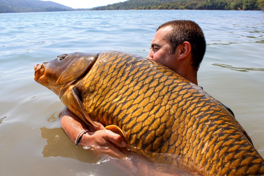 Disons qu’à l’époque il y avait beaucoup moins de gros poissons qu’actuellement. Certaines eaux étaient réputées pour cela, d’autres restaient à découvrir et beaucoup de flottes avaient une moyenne banale. Le temps passant, le réchauffement climatique, le développement de la nourriture naturelle et l’apport en nourriture exogène (bouillette, pellet…) a favorisé grandement la croissance des cheptels de nos eaux en France. Être un « spécimen hunter à l’époque signifiait que l’on avait pris un certain nombre de gros poissons, que l’on aimait la traque des gros sujets, que notre pêche était axée, orientée sur la capture des grosses carpes. À l’époque, on parlait plutôt en 25 kg+, alors qu’aujourd’hui c’est 30 kg+ directement et même davantage… J’ai toujours apporté une grande importance à la « qualité » des poissons et surtout des grands poissons que j’avais pour projet de rencontrer. Pour être plus précis, les poissons de cirque, même public, ne m’intéressent pas. Les poissons inconnus, provenant des grands espaces et eaux courantes m’ont toujours attiré, le côté mystique, sauvage, l’évasion est ma ligne de conduite depuis toujours. Même si j’ai beaucoup pêché le lac de St Cassien de 1999 à 2012, à courir après des poissons connus, ma philosophie de pêcheur est principalement axée autour de l’aventure et de l’inconnu. Le lac de St Cassien a été une histoire d’amour intense pour un ensemble de raisons, bien que certains critères me dérangeaient au plus haut point… Pression de pêche, poissons abîmés… Un amour de jeunesse !