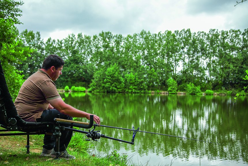 Nous allons commencer par le matériel, Je vais choisir mon ensemble canne-moulinet en fonction de la taille moyenne des amours blancs du plan d’eau et de la distance de pêche. Si ce sont des petits amours blancs de moins de 5 kg, je vais privilégier un ensemble canne de 3,30 m et moulinet de taille 4000 ou 5000. Si la moyenne est au-dessus de 10 kg et/ou que je pêche à plus de 50/60 m, je vais prendre une canne feeder beaucoup plus puissante (3,90-110 g mini) voire une canne barbeau.