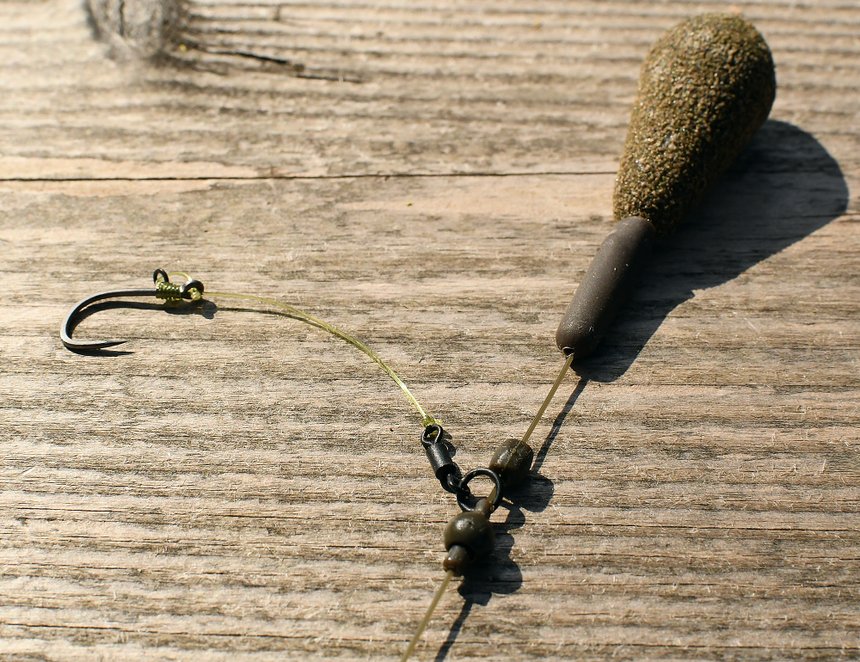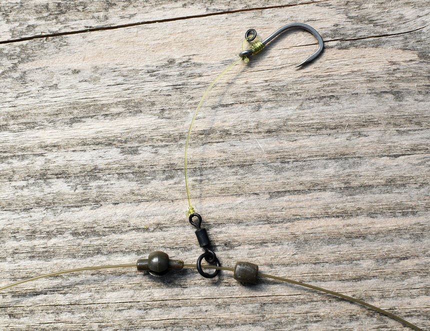 À noter que vous pouvez très bien remplacer de chod-rig par un spinner-rig, très à la mode et non sans raison car particulièrement efficace. Les émerillons chod « quick change » permettent de changer rapidement de bas de ligne sans avoir à refaire intégralement le montage, vous pouvez donc essayer ce que vous souhaitez ! Pour ce qui est de l’aspect sécurisé du montage, l’emploi de perles qui peuvent s’éjecter et ainsi libérer le bas de ligne en cas de casse est indispensable, encore plus lorsque l’on pêche dans les herbiers. Il est également possible d’utiliser des systèmes qui libèrent le plomb à la touche, mais personnellement je ne souhaite pas laisser au fond une centaine de grammes de matière toxique à chaque départ… Finalement, retenez le principe global de ce montage, qui entre dans la famille des « hélicoptères » et se lance très facilement, y compris à longue distance : le plomb est placé en tête, le bas de ligne (chod-rig ou spinner rig) équipé d’une esche flottante ou parfaitement équilibré est réglé sur le corps de ligne ou la tête de ligne (c’est ma préférence) à la distance souhaitée par deux perles dont celle placée à l’arrière (côté canne) peu s’éjecter facilement. Je n’ai pas trouvé d’autre montage aussi efficace, et qui plus est aussi polyvalent car utilisable sur tout type de fond, quelles que soient les circonstances du jour. Je lui dois un grand nombre de beaux poissons que je n’aurais jamais pris avec un montage classique… L’essayer, c’est l’adopter !