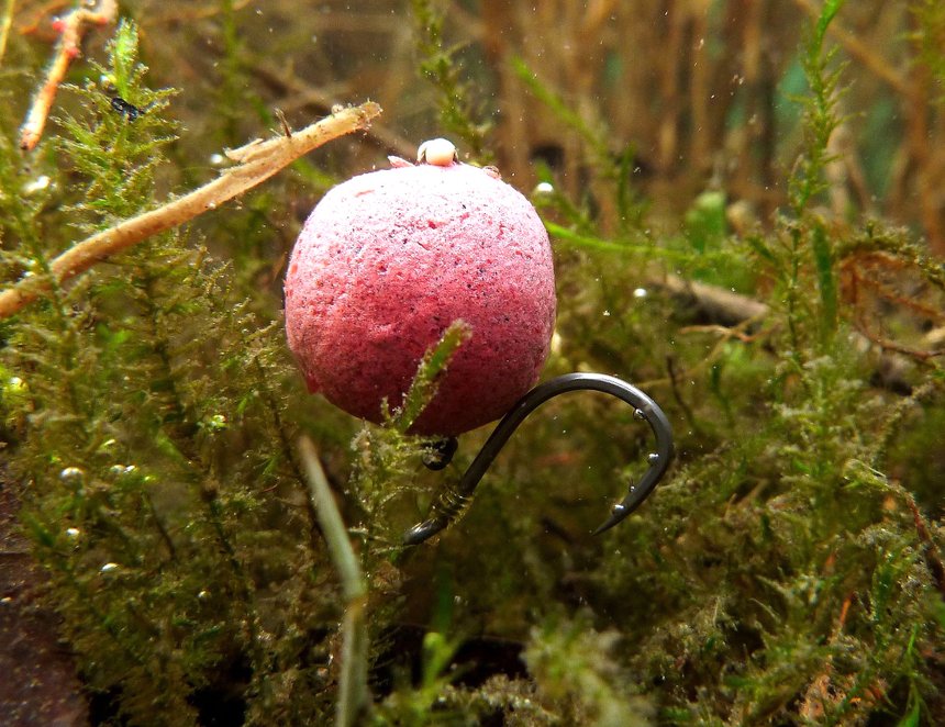 TROIS RÈGLES sont pour moi indispensables dans ce type de situation : • notre appât doit être parfaitement et durablement visible afin que la carpe le trouve facilement et puisse s’en saisir. Pour cela l’esche doit se présenter au-dessus des herbes ou des détritus qui jonchent le fond. Ce point est d’ailleurs capital quelles que soient la saison et la nature du fond ; • le montage doit être très « agressif » afin que le piège soit parfait et immédiatement piquant.