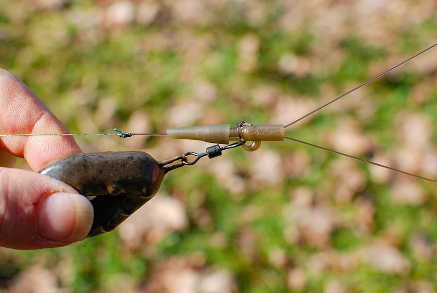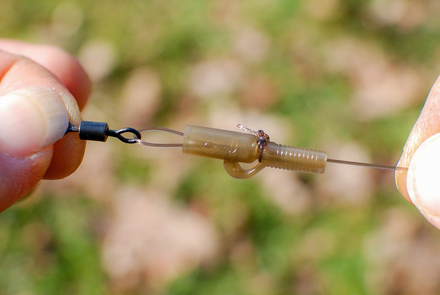 Il nous faut donc miser sur la conception globale des montages pour les rendre le plus sûr possible, en faisant en sorte qu’en cas de casse dans un obstacle (souche, branche, herbier dense, etc.), la carpe ne se retrouve aux prises qu’avec le seul bas de ligne, ce qui est un moindre mal. Pour beaucoup de systèmes utilisés par la plupart des carpistes, c’est loin d’être le cas ! Il nous faut imaginer ce qui peut se passer sous l’eau pour tenter sinon d’éviter tout risque (le risque zéro n’existant pas, à moins de s’abstenir de pêcher !), du moins de les réduire au maximum. Le système que je vous présente aujourd’hui n’est pas récent. Rendons à César ce qui lui appartient : c’est Éric Deboutrois qui me l’avait montré, il y a près de 15 ans, lors de nos échanges de pêcheurs de barrages sur le sujet de la sécurité des carpes. Depuis, des produits basés sur ce même concept ont vu le jour sur le marché, comme le « Hit & Run » de PB Products, qui en reprend la mécanique globale.