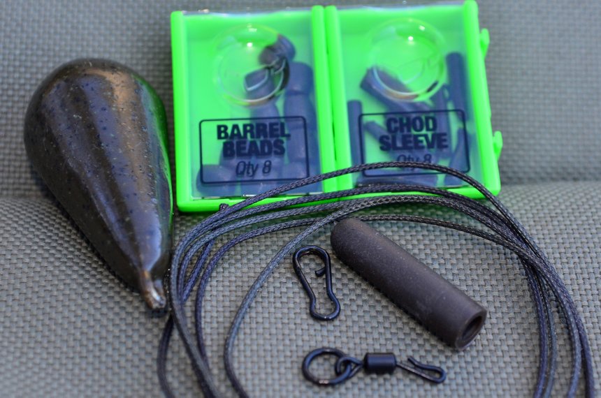Mais même s’ils libèrent le plomb facilement pendant le combat et semblent garantir la sécurité du poisson, en réalité en cas de casse c’est tout le système qui reste accroché au poisson jusqu’à la hauteur où il a cédé : le bas de ligne (qui casse rarement vu les matériaux actuels), le montage, la tête de ligne et parfois même une partie du corps de ligne (qu’il soit en nylon ou en tresse). Avec les conséquences que l’on imagine pour une carpe trainant cette laisse qui s’accrochera partout : une « gueule » déchirée assurée ! Prôner le « no-kill » et utiliser des montages ravageurs n’a aucun sens. Et pourtant c’est le cas de beaucoup de carpistes… C’est en pratiquant en été sur un plan d’eau herbeux que j’ai finalement trouvé mon bonheur avec les systèmes sécurisés utilisés pour pêcher au chod-rig. Sur le papier, le système de base n’est rien d’autre qu’un Montage de type hélicoptère : le plomb est en tête du montage, et le bas de ligne est fixé à un émerillon qui coulisse sur le corps de ligne (ou un « leader » en matériaux divers), rendu plus ou moins libre en entourant l’émerillon d’un système de blocage réglable.