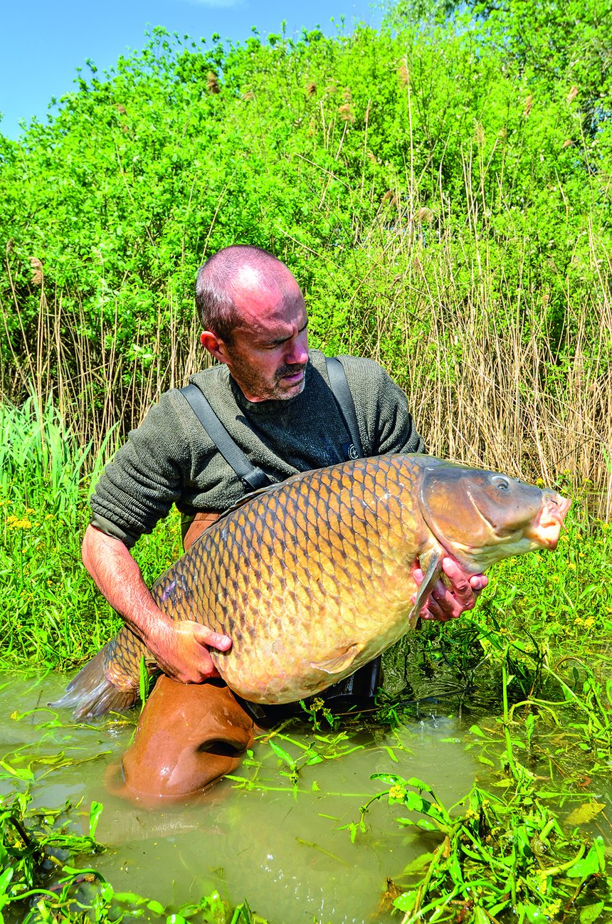 Un jour Lilian avait organisé une rencontre entre équipes CCMOORE et NASH. Elles pratiquaient chacune à leur manière une pêche spécialisée dans laquelle elles excellaient. Lors de ce rendez-vous je me suis nourri des échanges pour commencer à gamberger et réfléchir à d’autres possibles. J’ai notamment reçu des conseils très avertis de Laurent Valette. Je venais justement de lire son livre « une vie de pêcheur de carpe » et je pouvais alors mieux comprendre comment il s’y prenait pour pêcher, généralement en gravière. En reprenant les bases de Laurent, je pêche le plus souvent possible à deux cannes pour réduire le bruit des lignes dans l’eau et si cela est opportun, sur le même spot. Si le site le permet, je pêche en nylon, avec des montages et des esches qu’on pourrait penser faits pour la grosse friture. J’évite au maximum l’échosondeur, le bateau, le moteur électrique et si j’ai tout repéré à l’avance, je lance du bord. Déjà rien que la modification de ces détails a considérablement augmenté mes résultats et la moyenne des captures, car les carpes les plus lourdes sont souvent les plus âgées et les plus expérimentées.