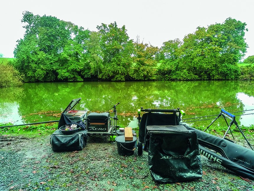 Dans les périodes les plus privilégiées de l’automne, j’ai tendance à commencer avec un method ou hydrid de taille L pour amener un minimum de nourriture quand même sur le poste car les carpes ont bon appétit. Après l’aspiration d’une carpe sur un method, il ne reste pas grand-chose et à cette période les poissons mangeant franchement, pas de risque qu’il y ait trop de farines ou pellets sur le method pour les empêcher de « prendre » l’appât piégé. Dans le cas où je sens que les poissons commencent à manger un peu n’importe comment ou que je commence à avoir des ratés, je commence déjà par diminuer la taille des method-feeder pour essayer de calmer un peu les poissons. Je les remplis aussi plutôt de pellets que de farines qui vont entretenir ce phénomène de particules. Si le problème persiste, alors je recrée un poste à quelques mètres du premier pour en quelque sorte repartir à zéro sur le spot lui-même. Les poissons de carpodrome sont très mobiles, ils n’hésiteront pas à se déplacer de quelques mètres pour retrouver leur nourriture. Dans ce cas, je commence le nouveau poste avec un petit, method-feeder taille S voire XS, sur lequel je ne vais mettre que du pellet et pas de farine.