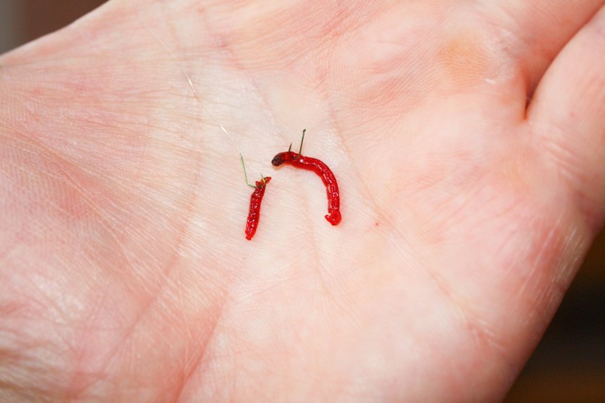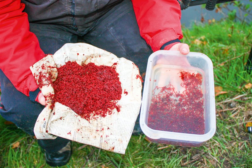 Le ver de vase est la larve d’un insecte, le chironome plumeux, une espèce de moustique qui ne pique pas. Pour la pêche au coup, nous utilisons deux larves de cette même famille, mais qui sont de taille différente et ne prolifèrent pas dans les mêmes eaux. Le fouillis de vers de vase vit et se récolte dans des endroits où les déchets organiques sont importants. Celui qui nous intéresse pour la pêche, car il en existe évidemment de nombreuses espèces, affectionne les eaux courantes de petites rigoles et moyens cours d’eau, situés non loin des stations d’épuration. On destine ces micro-larves à l’amorce. Le ver de vase, plus gros, plus ferme également que l’on pique à l’hameçon, est enfoui dans des couches plus profondes de vase présente dans les mares d’eau stagnante, étangs et les zones calmes des canaux, où il passe la majeure partie de sa courte existence. Leur attrait sur absolument toutes les espèces de poissons blancs d’eau douce, mais aussi certaines en mer, est incroyable. Ce n’est pas un hasard si on se sert abondamment de ces larves d’un beau rouge rubis en aquariophilie.
