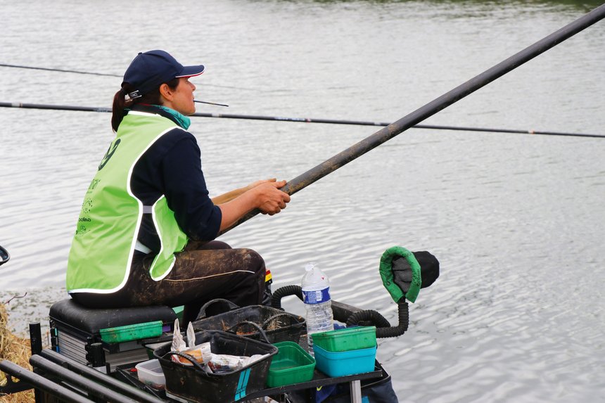 L’installation des cinq secteurs de pêche a été judicieusement pensée par l’organisation. A, B et C sont adjacents et alignés, E et F sont éloignés mais collés eux aussi. Quand on connaît l’importance des fameuses ailes, réduites donc ici à quatre seulement pour cinq secteurs, ce découpage ne laisse que peu de place à la chance. Les représentants de toutes les nations sont d’ailleurs unanimes : le parcours est certes difficile mais régulier. Les meilleures devraient être devant. Dès l’amorçage, on comprend que l’approche tricolore diffère de celles de ses adversaires. Beaucoup amorcent exclusivement à la coupelle alors que les Françaises adoptent une stratégie plus classique, à la main. Les tricolores ont en effet décidé de pêcher les touches, de prendre tout ce qui passe, surtout les gardons.