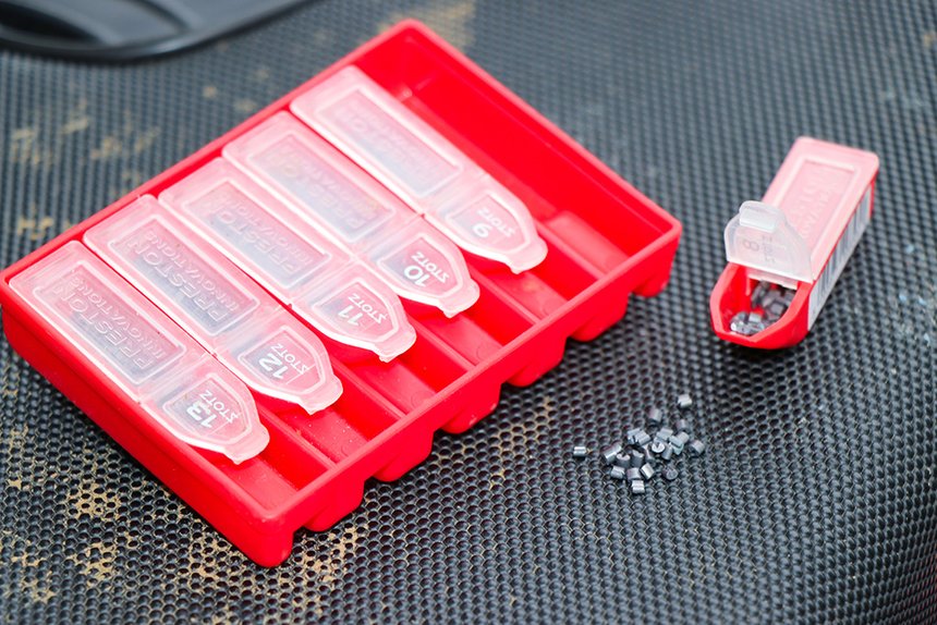 Il ne s’agit pas d’emporter avec vous une boîte contenant chaque taille de plombs, mais, si nous partons du constat que vous avez équilibré vos montages à domicile, de pouvoir ajuster si besoin au bord de l’eau. Ainsi, mon tiroir contient un panel de petits plombs, cylindriques, de la taille 8 à 13. Ils sont plus faciles à apposer sur n’importe quel diamètre de Nylon, mais aussi lorsque les mains ne sont pas tout à fait propres ou que le stress d’une compétition s’en mêle.