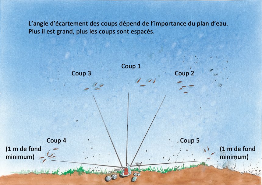 Je multiplie toujours les coups et les choisis en fonction de la configuration du fond et de l’environnement. Plus l’eau est claire, plus je cherche le maximum de profondeur, dans la mesure du possible. Un mètre représente un minimum, surtout en bordure. Le but est de prospecter toutes les distances pour dénicher les poissons. Je vais proposer des menus différents sur chaque poste pour déterminer celui qui convient le mieux. Je conserve le même mélange d’amorce, soit garni d’asticots, de vers coupés ou de quelques grains de maïs. Ceci me permet de jongler entre les coups et les esches et de m’assurer un rythme continu de touches. Dans le cas où les touches cessent sur l’un, je file sur l’autre, et ainsi de suite. Certains postes mettent plus de temps à s’activer que d’autres, parce que les poissons ne se situent pas dans cette zone précise. Et toutes les espèces ne viennent pas sur chaque coup simultanément. Le contenu mixte de la bourriche en fin de pêche reflète parfaitement cette danse orchestrée entre tous les coups. L’hiver est synonyme de patience. Pour déterminer ces différents coups, la seule solution est de s’astreindre à un sondage méticuleux. La sonde devient mon œil sous la surface, seule capable de localiser un fond plat et dénué d’obstacles, susceptible d’accueillir l’amorce et donc de la rendre accessible aux poissons. Je cherche des fonds aussi réguliers que possible, que je vais pouvoir exploiter avec les mêmes réglages de ligne. Cette opération est facilitée sur les étangs artificiels au fond relativement linéaire. En ne modifiant pas la longueur de ma canne, je peux donc construire plusieurs coups, mais à des angles différents.