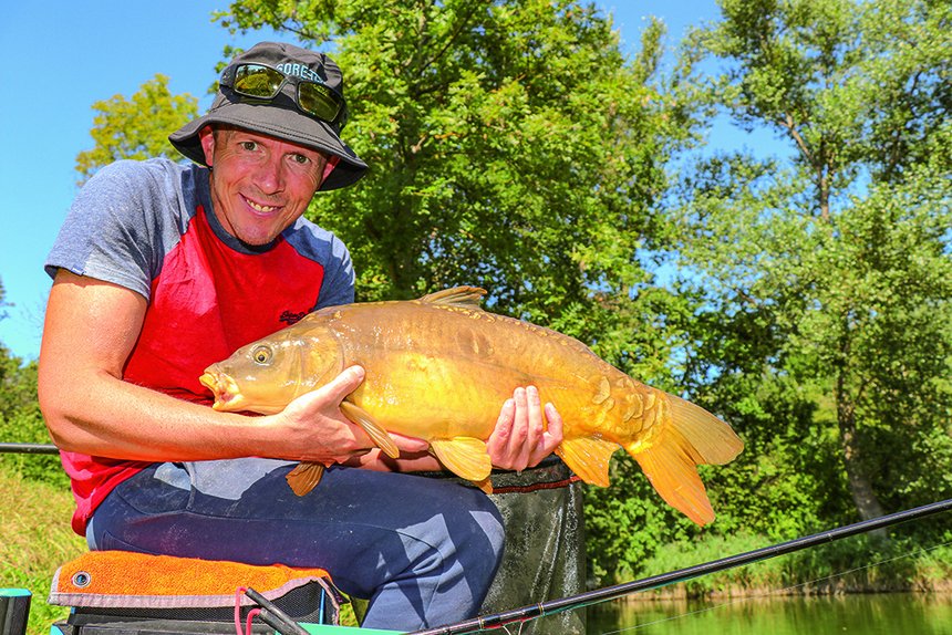 Les anglicismes sont fréquents dans toutes les pêches. Le coup n’est pas en reste avec cette approche peu conventionnelle que j’ai découverte outre-Manche : le dobbing. Il s’agit littéralement d’une pêche à vue, sans amorçage préalable ! Plusieurs accessoires sont indispensables pour réussir dont deux en particulier, la patience et une bonne paire de lunettes polarisantes ! Une fois installé à votre poste, il faut repérer les carpes en maraude sur le coup et l’aide de ces lunettes sera précieuse. Les carpes sont parfois statiques, parfois en mouvement, mais toujours selon des déplacements placides caractéristiques de l’été. L’objectif est d’aller placer juste sous leur nez un appât attractif, visible et à la bonne profondeur. Très souvent la carpe se précipite dessus. La touche est alors violente et le départ tonitruant.