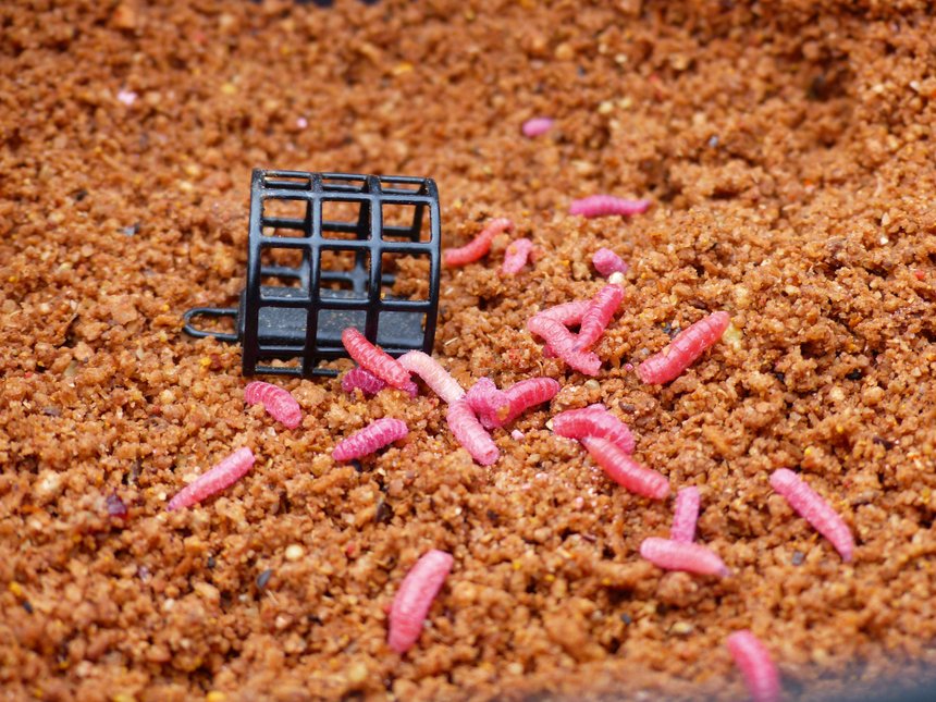 Hiver rime avec petites bouchées. Nul besoin de s’encombrer d’une multitude d’esches à incorporer dans l’amorce ou à piquer à l’hameçon. Le fouillis de vers de vase est un aimant à poissons lorsqu’il est couplé à l’utilisation de vers de vase plus gros sur l’hameçon. Mais il n’est pas indispensable, les pinkies rouges vigoureux sont appréciés des cyprinidés en général. Ils doivent être apportés par pincée dans les cages de rappel et piqués sur un hameçon n°20 ou 22, seuls ou par deux.