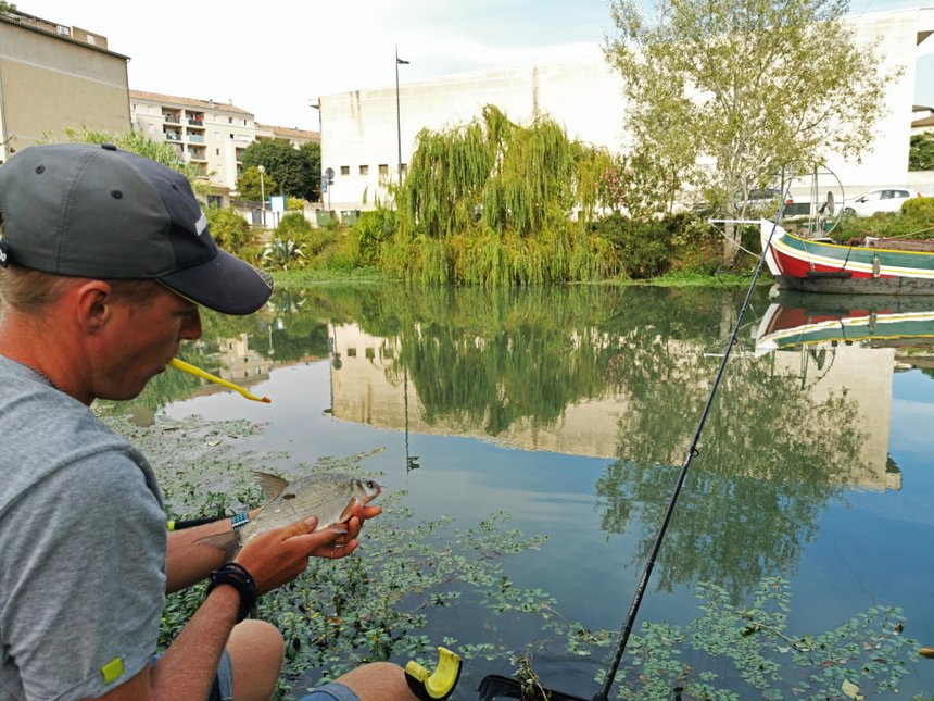 Mais il faut surtout s’assurer de l’absence d’autres herbiers jonchant le fond sans parvenir jusqu’en surface. Rien n’est pire, en effet, que d’amorcer au beau milieu d’un fond herbeux, impossible à pêcher au feeder. Un sondeur électronique est parfait pour identifier ces herbes cachées rapidement, même à longue distance. Le but, c’est de chercher à s’approcher de ces zones, dangereuses pour nos montages mais synonymes d’abris pour les poissons. Chercher les abords profonds des zones abritées est donc l’objectif principal. Le poste idéal pourrait être une berge opposée à distance abordable, bordée par un herbier épais donnant sur un tombant au pied duquel on va pêcher. À défaut de cassure nette, on bloque le fil dans le line-clip pour atteindre systématiquement le ras de cet herbier. Dans le même esprit, les abords de ponts et de pontons, les murs aux pieds ombragés, les coques des bateaux, les frondaisons d’un arbre sont autant de zones à explorer. Bref, quand le soleil tape fort, la consigne, c’est chercher l’ombre !