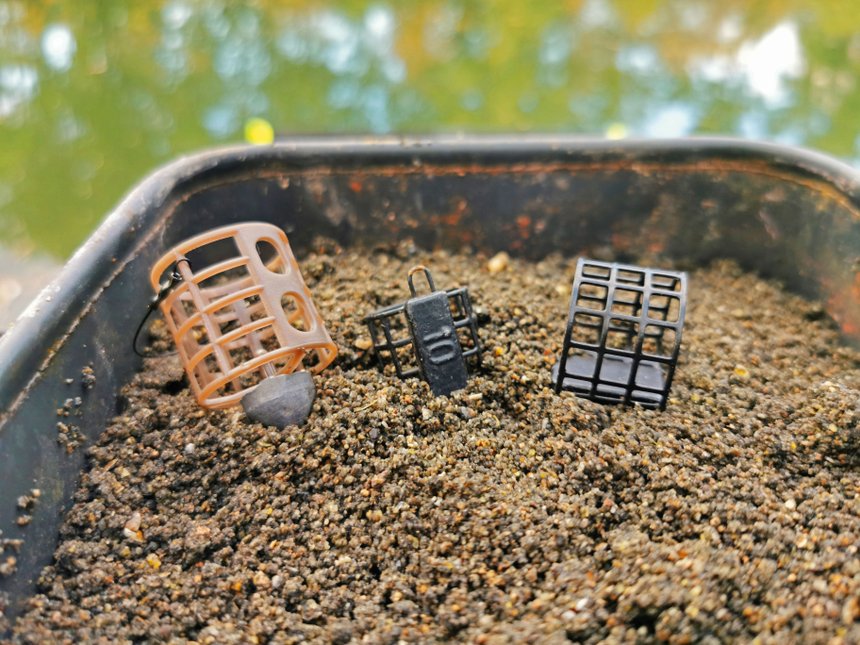Il est compliqué, voire souvent impossible, d’utiliser un long bas de ligne lorsque l’on vise les frondaisons d’un bel arbre ou un banc de nénuphars. Une petite astuce permet malgré tout de tenter le coup. On utilise pour ça un feeder dit open ended (ouvert sur l’arrière). On peut y coincer le bas de ligne, enserré dans l’amorce et envoyer ainsi un montage de gabarit réduit qui se déploiera sur le fond avec le délitement des farines.