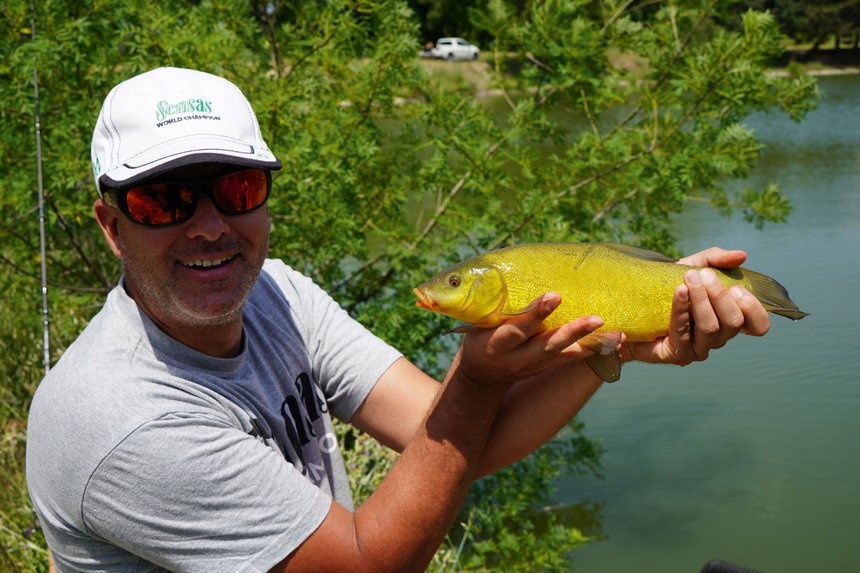 Benoît décide de pêcher au ras de la berge opposée, Aurore juste devant le jonc repéré en pleine eau. À sa grande surprise, il observe immédiatement des signes d’activité dans son scion, des passages dans le fil de poissons se nourrissant donc autour du method feeder. Et, dans la foulée, sa canne plie brusquement ! Le combat s’engage, le poisson revenant très vite vers la bordure. C’est un carassin que Benoît perd hélas au moment de le mettre dans l’épuisette.