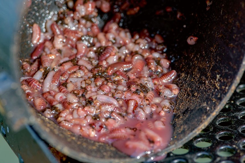 Pour être un vrai spécialiste et disposer d’une arme de choix, il faut proposer des vers différents. Ils sont des appâts idéaux au bout de l’hameçon pour cibler les brèmes, plaquettes, tanches et autres beaux poissons. Les vers de fumier sont de petite taille, fins, solides et remuants. La description type d’une esche parfaite au feeder. Solides pour tenir à l’hameçon lors du vol de la cage et son impact sur l’eau. Remuants pour être très attractifs et déclencher des touches dans des conditions difficiles.