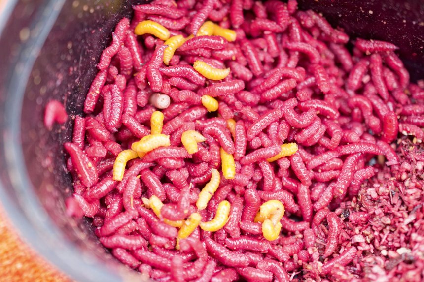 L’asticot est un grand classique, rares sont les parties de pêche où il est possible de s’en passer. Il intéresse tous les poissons blancs. On les utilise directement mélangés dans l’amorce ou bien emprisonnés entre deux bouchons dans un feeder. Dans ce dernier cas, les asticots vont contribuer par leur activité à vider rapidement la cage de son contenu. On trouve des asticots de toutes les couleurs et il faut en tenir compte car elles induisent des différences sur le rendement. Rouges, ils intéressent davantage les petits poissons et génèrent plus d’attraction. Ils sont plus efficaces en plan d’eau et sur des poissons de taille modeste: gardons, brèmes mais aussi ablettes que l’on peut considérer comme indésirables au feeder. Les asticots blancs sont efficaces en rivière pour sélectionner les chevesnes, barbeaux et carpes. C’est une couleur qu’il ne faut pas sous-estimer tant elle peut permettre de sélectionner de beaux poissons au milieu des petits. Il est possible d’utiliser uniquement des asticots collés dans le feeder. On pêche alors avec des esches pures, tout en assurant une libération rapide du contenu. C’est une technique très utilisée en Espagne pour cibler les carpes et les barbeaux en rivière. À l’hameçon, l’asticot s’utilise par deux ou trois pour les beaux gardons. Une belle brème ne refusera pas la copieuse présentation d’un bouquet de cinq asticots sur un hameçon numéro 12 ou même 10.