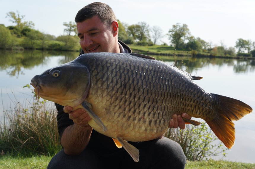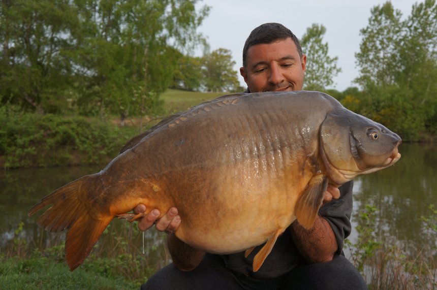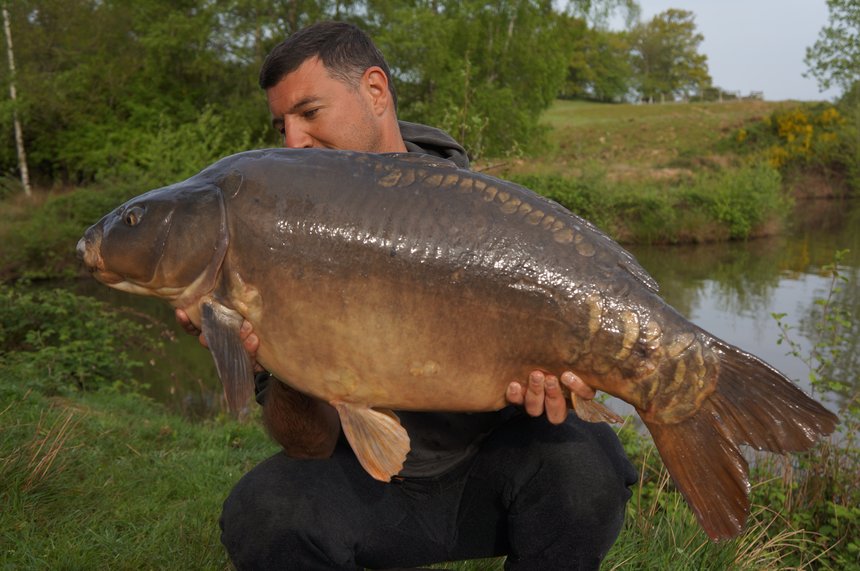 Pascal revient tranquillement sur notre poste au C3, après avoir fait un tour du propriétaire des autres étangs. Il est enthousiaste et libéré car notre problème matériel est enfin réglé ! Nous mangeons et en plein après-midi la canne sur notre bordure déroule fort. C’est une jolie miroir de la douzaine qui lance donc notre pêche. On ne s’attendait pas à un tel début et pas forcément sur ce genre de spot ! Nous replaçons cette canne avec minutie et laissons pêcher les autres. Nous pêchons avec au moins 3 approches différentes, persuadés que nous allons trouver quelques pistes pour enchaîner les touches ! Le lendemain matin le constat est clair : une décroche est à déplorer sur la même canne et nous n’avons pas eu d’autre touche. Nous essayons alors de pêcher au zig à différentes profondeurs, mais rien n’y fait ! De fait une deuxième canne rejoint la bordure et un spot « oublié » … Et cette canne produit des touches également.
