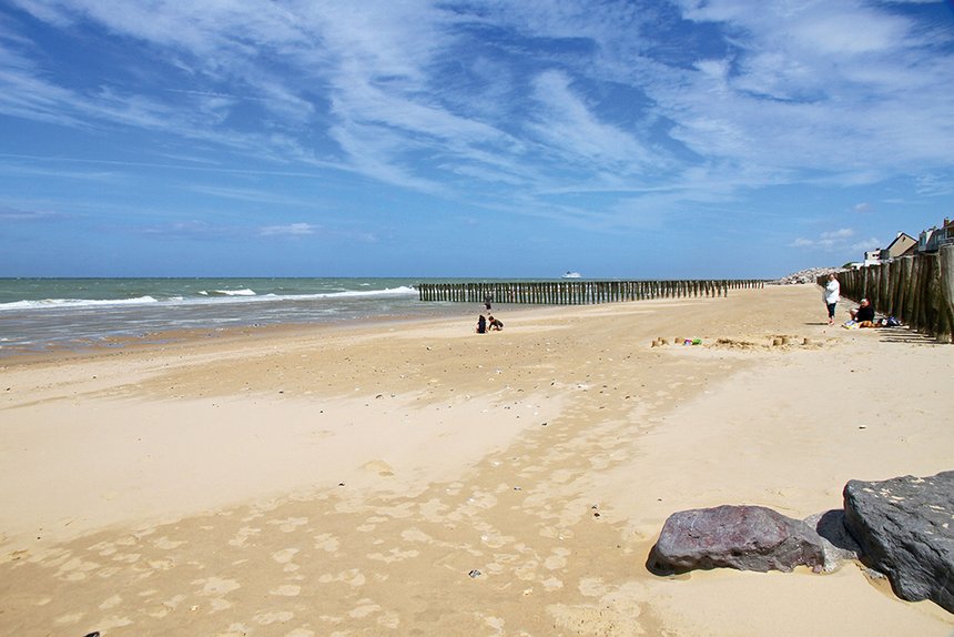 En filant vers l’est, on rejoint les falaises blanches du cap Blanc-Nez, hautes de 134 m. Le site, majestueux, est touristique et donc très fréquenté en période estivale. La pêche en surfcasting, qui permet de pêcher loin sur ces fonds très plats, est ici aussi la technique reine pour la capture des bars qui croisent à distance. Crevettes grises, mais aussi bouquets, dans les trous et sous les cailloux, ravissent les pêcheurs à pied. *